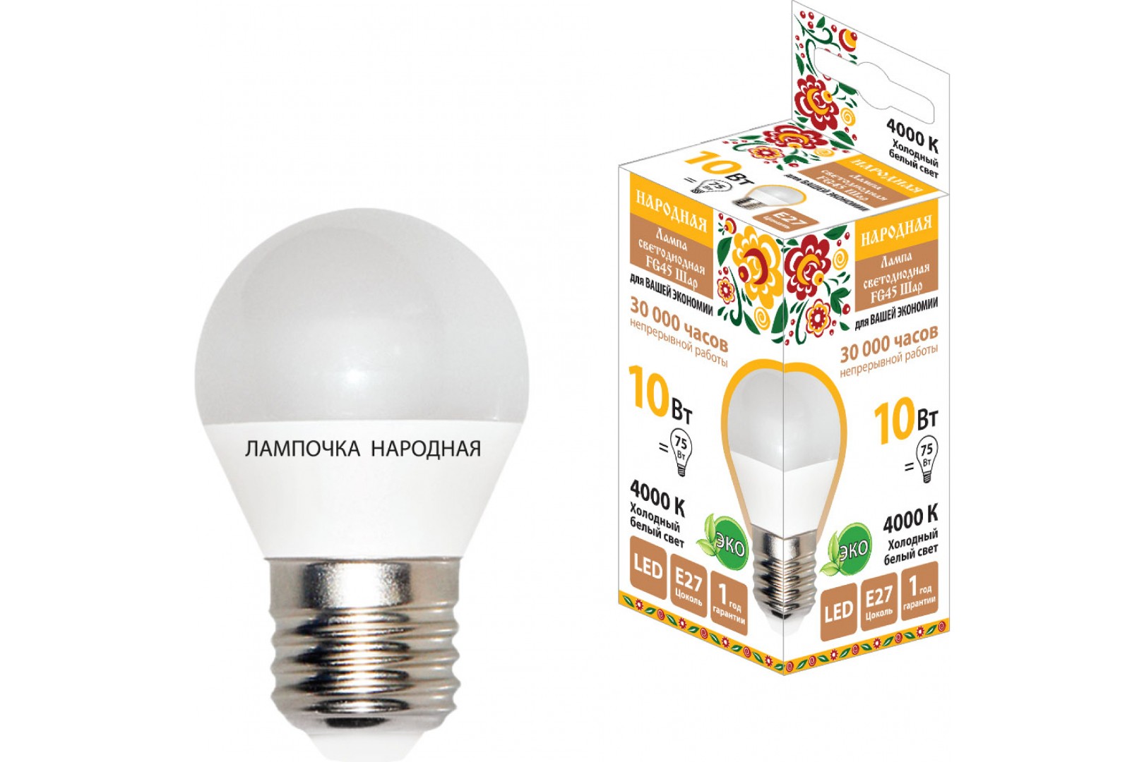 Купить Лампа светодиодная FG45-10 Вт-230 В-4000 К–E27 Народная 96 руб./шт Артикул SQ0340-1589 Код К0000099210 Бренд TDM Остатки шт − + В корзину